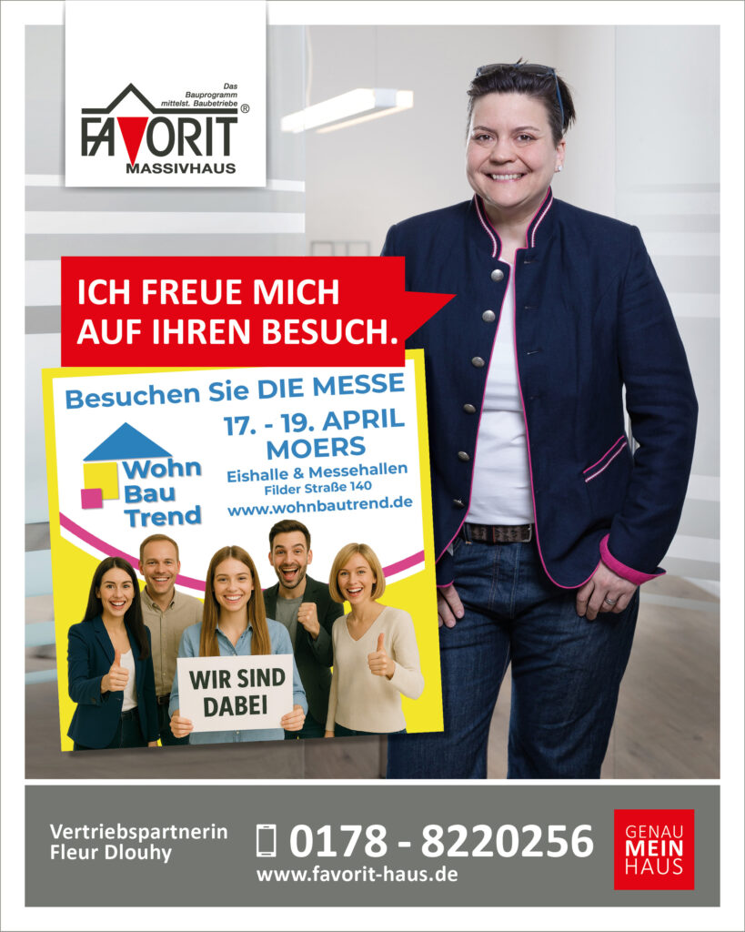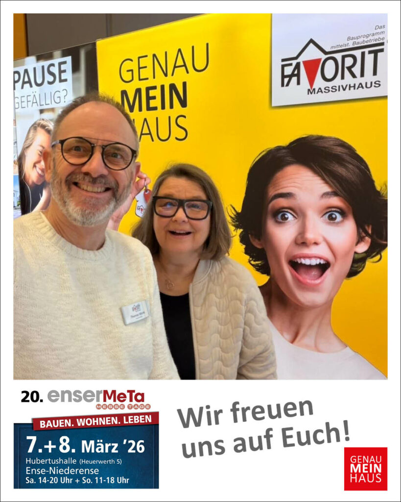 Zuverlässig, wie jedes Jahr. Wir sind dabei! Vom 23.-25.01.2026 begrüßt Sie unsere erfahrene Vertriebspartnerin @fleurdlouhy auf der Baumesse im Landschaftspark Duisburg. Erfahren Sie alles über aktuelle Wohn- und Bautrends, Fördermöglichkeiten und Grundstückssuche. Profitieren Sie bei FAVORIT Massivhaus von der kostenlosen…