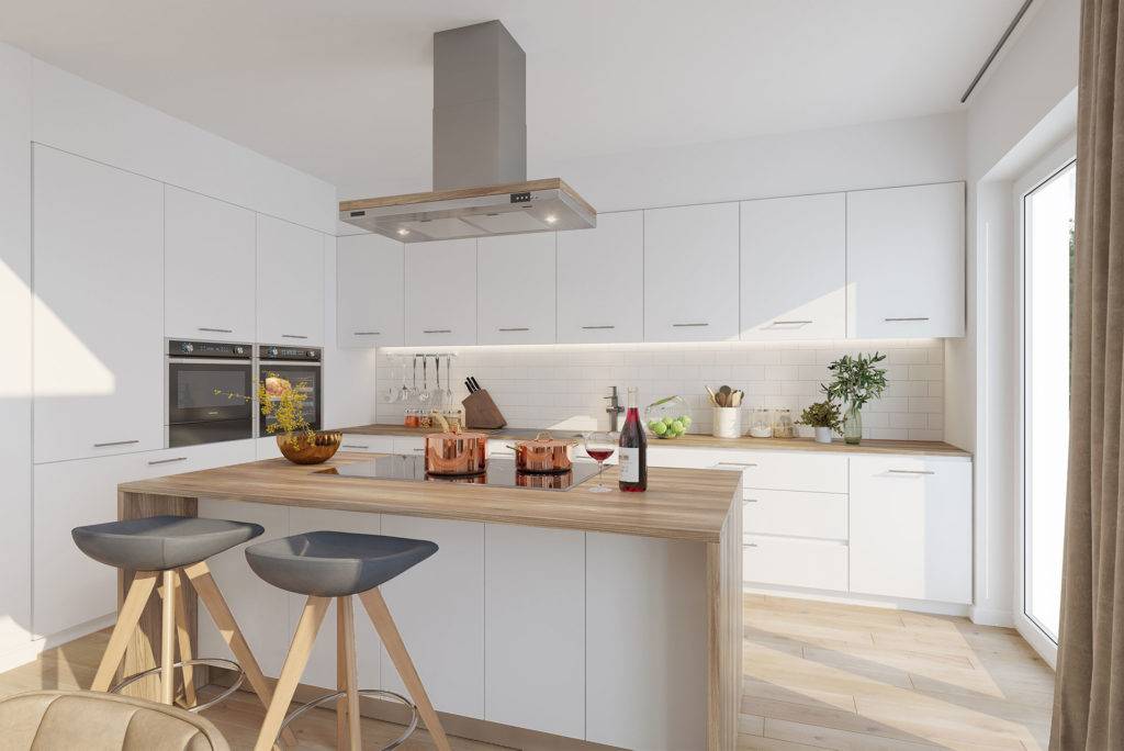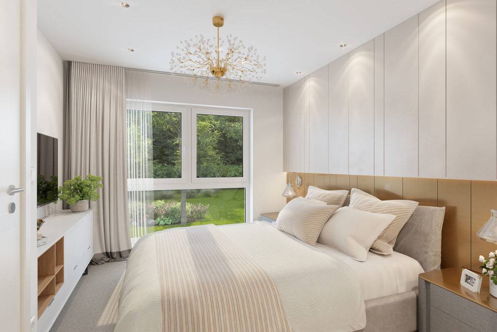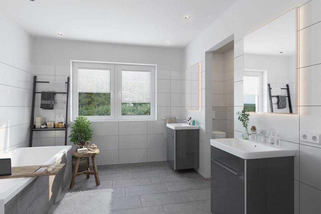 Bei der FAVORIT-Stadtvilla Citylife 148 edition haben sich unsere Architekten für eine symmetrische Bauweise entschieden. Die mittige Erschließungsachse dient hier als architektonische Trennung und verleiht dem Haus eine ganz besondere Optik, eben klassisch Stadtvilla.