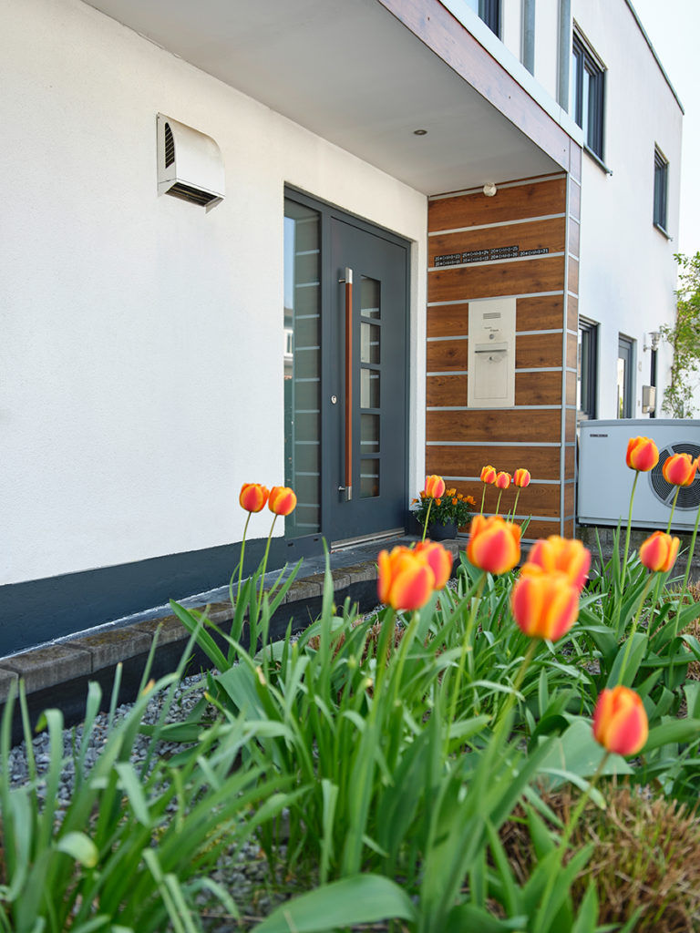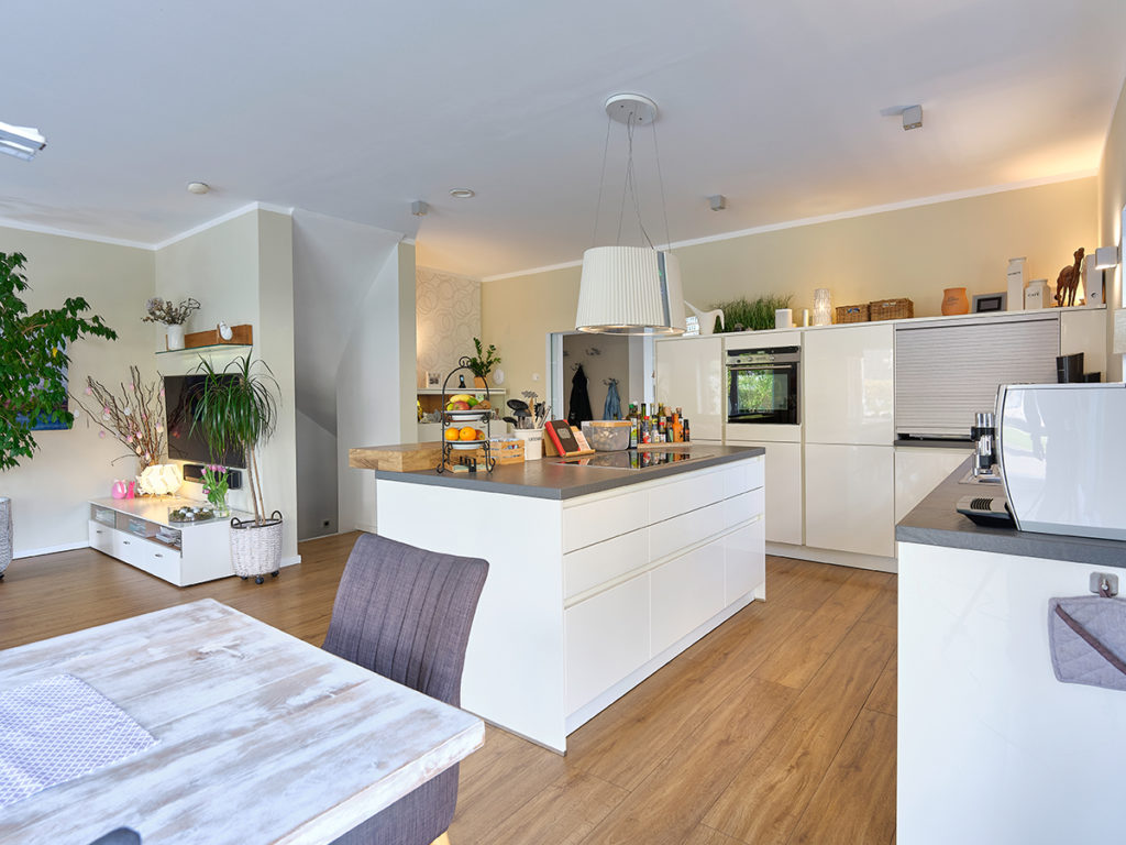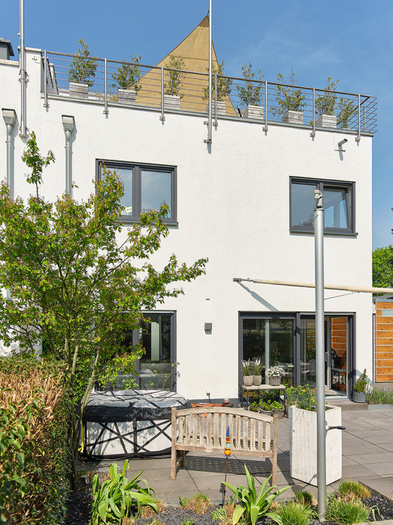 Heimkommen und Wohlfühlen. Diese außergewöhnliche Doppelhaushälfte überzeugt durch klare Architektur, hochwertige Ausstattung und ein durchdachtes Raumkonzept auf mehreren Ebenen. Mit ihrer modernen, kubischen Bauweise und stilvollen Fassadengestaltung sticht sie schon auf den ersten Blick aus der Umgebung hervor. Das Herzstück des Hauses ist der lichtdurchflutete Wohn- und Essbereich mit offener, hochwertig ausgestatteter Küche. Bodentiefe Fenster und ein durchgehender Holzboden schaffen eine warme, einladende Atmosphäre – ideal für gesellige Abende oder entspannte Stunden mit der Familie. Im Staffelgeschoss befindet sich eine großzügige Dachterrasse – ideal für Lounge oder Urban Gardening.