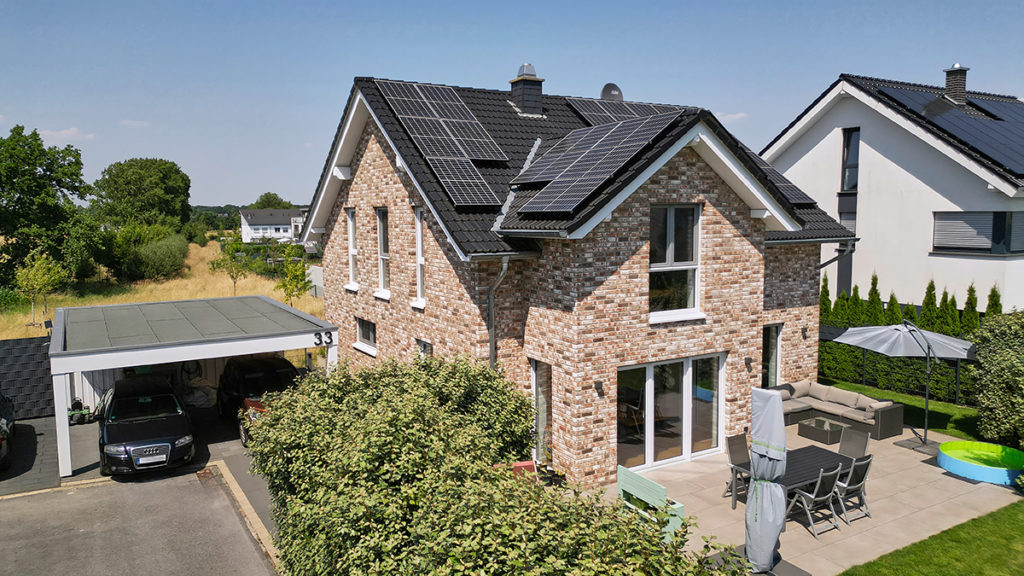 Im Inneren überzeugt das Haus durch durchdachte Raumaufteilung, lichtdurchflutete Wohnbereiche und direkten Zugang zum Garten. Der angrenzende Carport bietet bequem Platz für zwei Fahrzeuge und rundet das rundum gelungene Wohnkonzept ab.