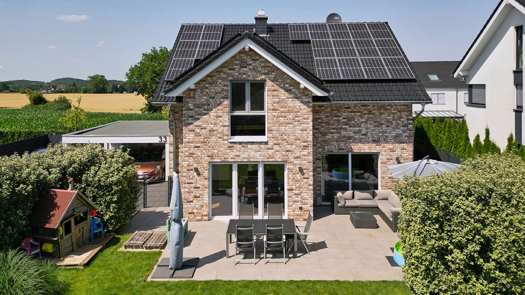 Ein echtes Highlight ist die großzügige Dachfläche mit effizient installierten Photovoltaikmodulen – ideal für zukunftsorientiertes, nachhaltiges Wohnen. Auf der sonnigen Terrasse mit Blick ins Grüne genießen Sie entspannte Stunden mit Familie und Freunden, während Kinder sich im liebevoll gestalteten Garten mit Spielhaus austoben können.